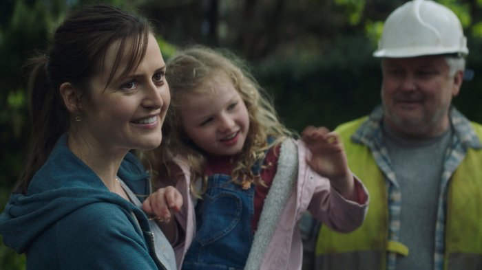 Herself isn’t just dealing with abuse though as it’s also about rebuilding and self-discovery with how Sandra decides to create a better life for Emma and Molly. With the housing system offering no hope for permanency, Sandra ultimately enlists the help of friends to build a house of her own and it’s a genuinely moving experience of growth. Each step of her house coming together and Sandra’s determination to get it done for her girls is truly heartwarming to watch. The growth that she goes through in learning how to build her house and acts as a leader is incredibly touching and the writing from Dunne and Malcolm Campbell and Dunne’s great performance do a great job building her story as inspirational and triumphant. Even the way she pushes past her own obstacles and scars left from Gary’s abuse is enough to make her rise to self-worthiness impactful, but the film takes it one step further with how it impacts Emma and Molly.