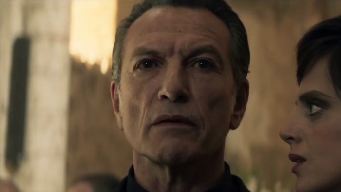 As for everything else that happens in this episode, it’s pretty much what you’d expect. The two female officers that arrived last week continue to poke around with no real purpose yet and Elena returns to basically deliver the coin to Angelo through Merche. Father Vergara’s return is much more epic as it took a lot to get there. After seeing Vergara talk to a much calmer vision of Giacomo (Riccardo Frascari), the boy who died from an exorcism and put the coin in Vergara’s hands, we watch him actually go through some tense sequences in order to escape execution. The action heavy sequences are really intense and it’s great to still see Vergara take Giacomo’s words to heart about him needing to find hope. Nothing compares to his return to village though, as him gearing up to take on Angelo is truly bad ass. If you want to hype up the big finale battle, this is how you do it.